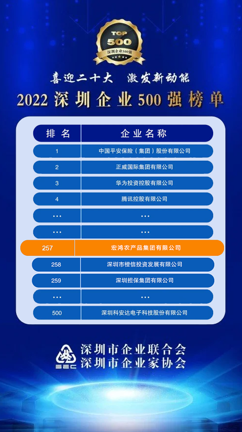 Recently, the Ministry of Agriculture is the bureau level institutions - farmers Daily published the 2022 China's top 500 agricultural enterprises list, Honghong Agricultural Products Group Co., Ltd. by virtue of "steady progress, steady quality improvement, stable and good" good situation once again among the list, and jumped from 440 last year to 306.
